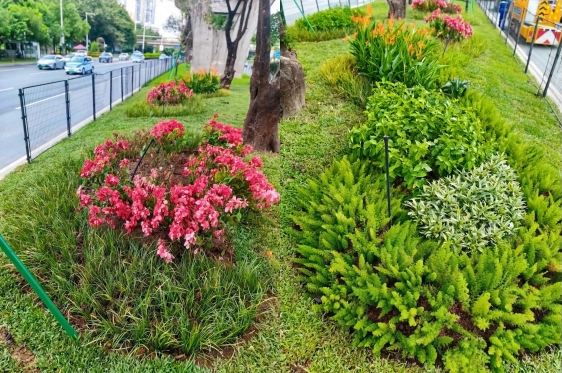 龙岗大道作为深圳东部枢纽的“大动脉”,在龙岗区的产业布局中占据着举足轻重的战略地位。团队历时三个月,将“灌、改、造”结合,见缝插针增“绿量”、以质换量提“绿质”,对龙岗大道两侧、中间及大芬、木棉湾重要节点进行全方位优化升级,共计修剪、补植绿植超20000棵,提升面积达23260平方米,成为龙岗区第一个完成城市主干道绿美升级的城市管家项目,为城市增添了一道亮丽的风景线。